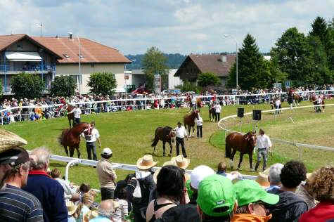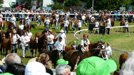 Die Ausstellungspferde und die Zuchtstuten mit ihren Fohlen